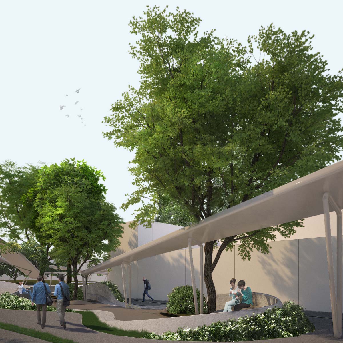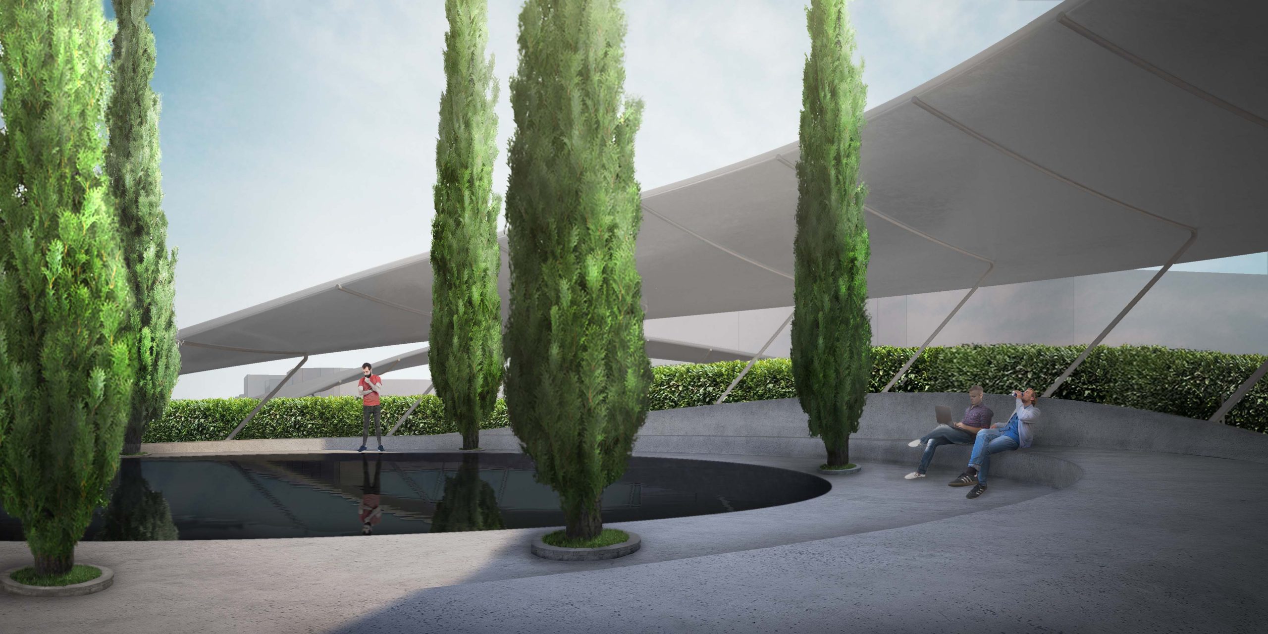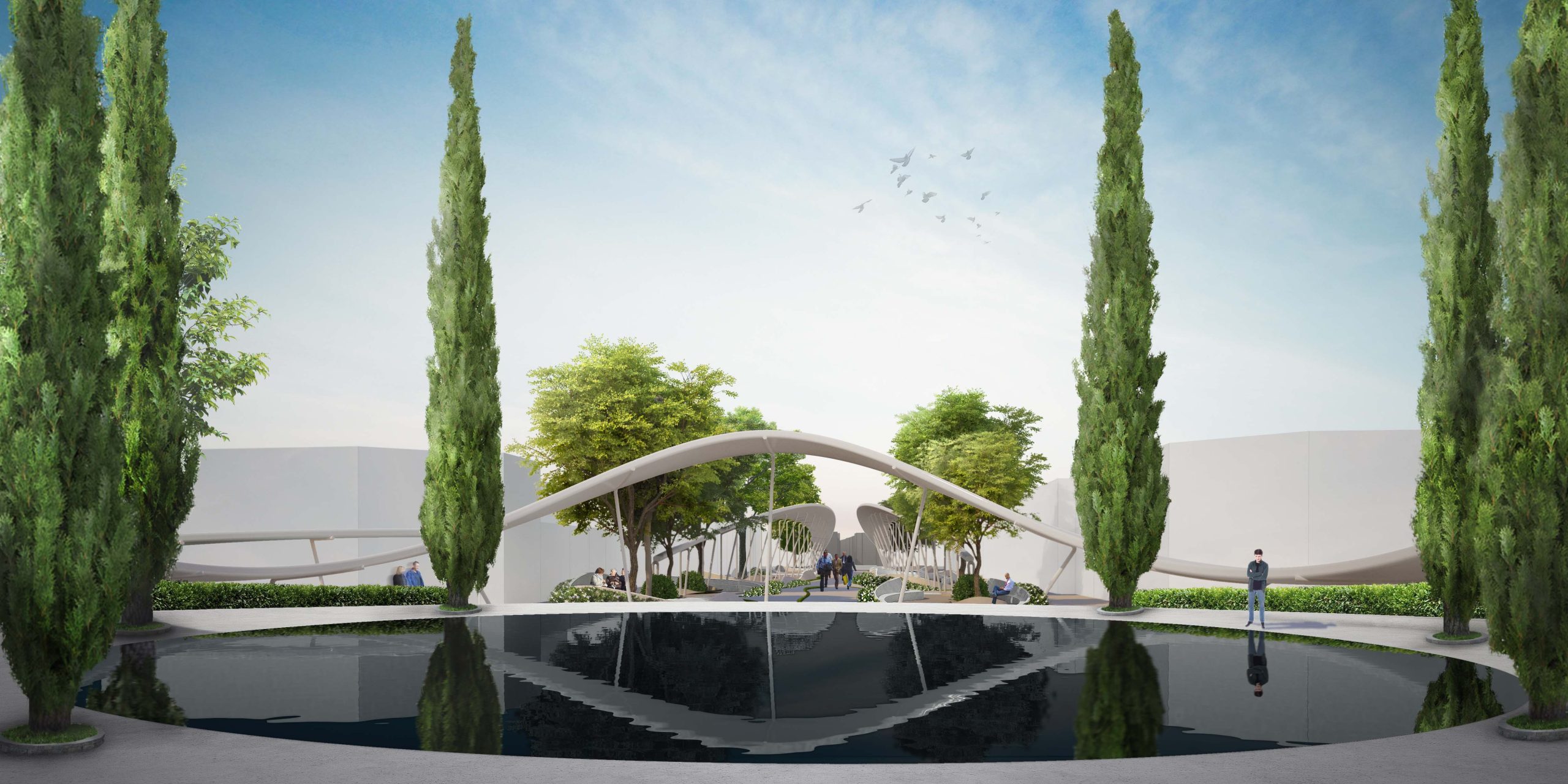 Based on preserved trees location along the pathway and the present square a geometrical magnetic field attraction was activated ; temporary resting nodes have been formed accordingly and regarding human motion along the site an agent based system was activated in the field to form the shade zones over most picked routes. The monument is a piece of peaceful space, which is emerged in form of a mirage like effect in the heart of the city.
