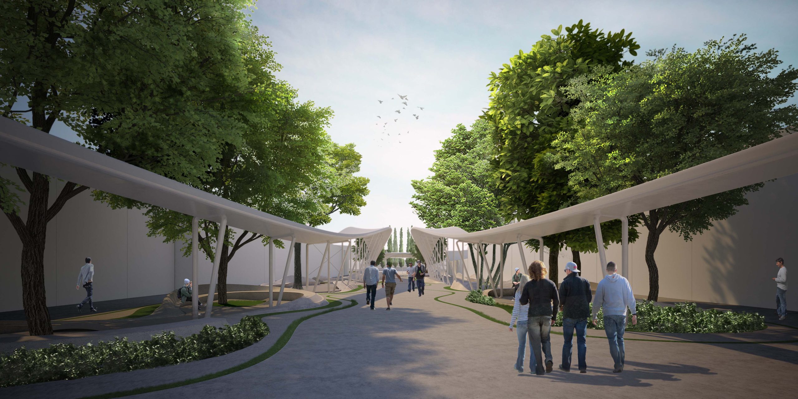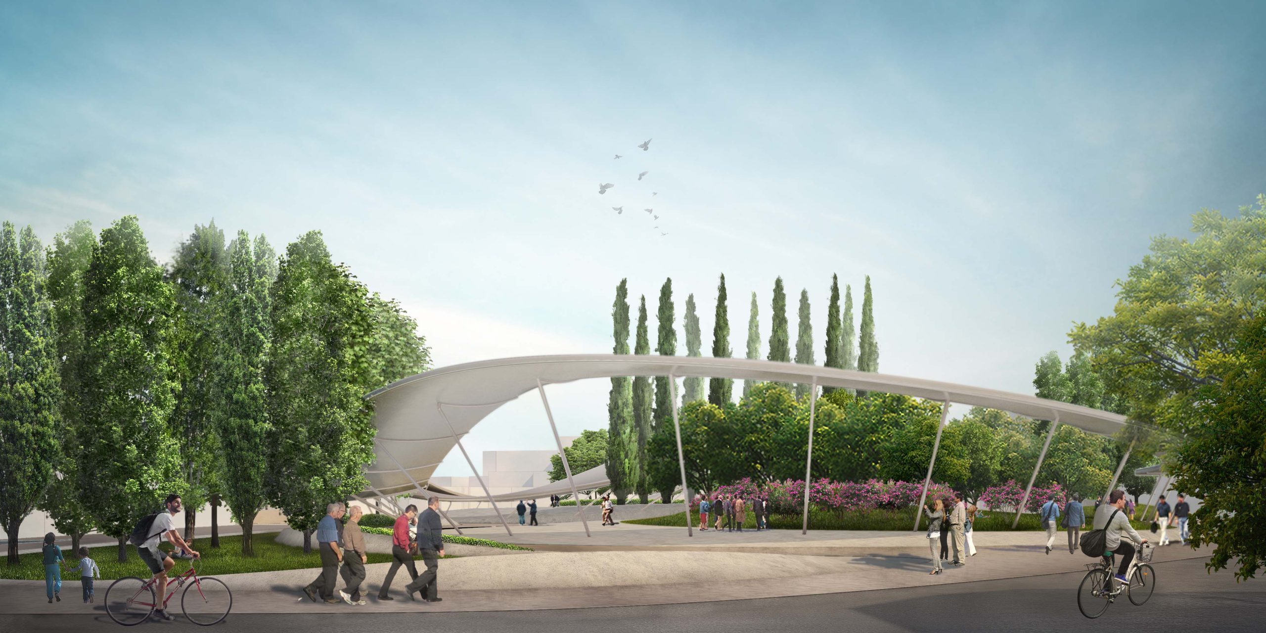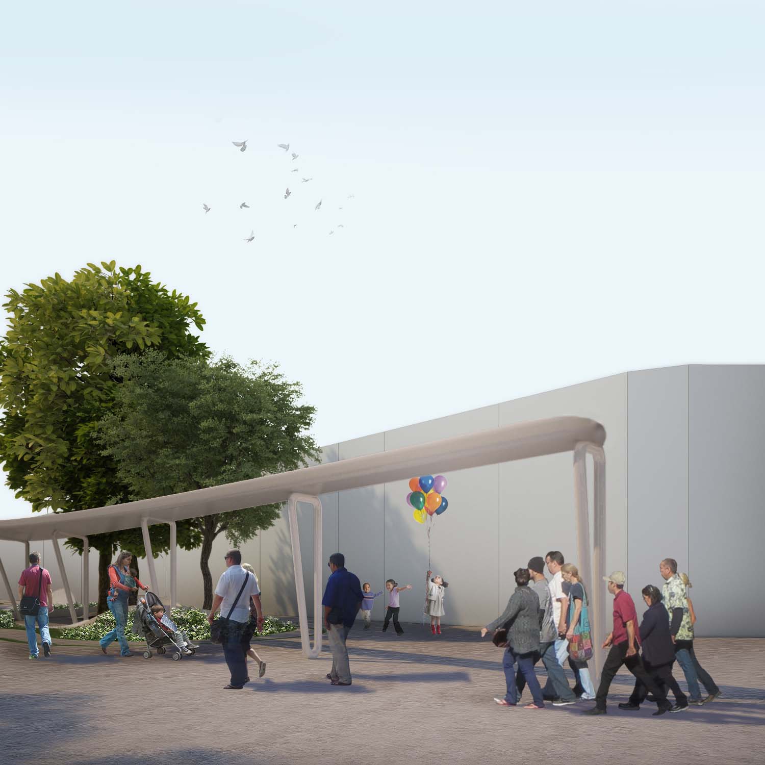 Based on preserved trees location along the pathway and the present square a geometrical magnetic field attraction was activated ; temporary resting nodes have been formed accordingly and regarding human motion along the site an agent based system was activated in the field to form the shade zones over most picked routes. The monument is a piece of peaceful space, which is emerged in form of a mirage like effect in the heart of the city.