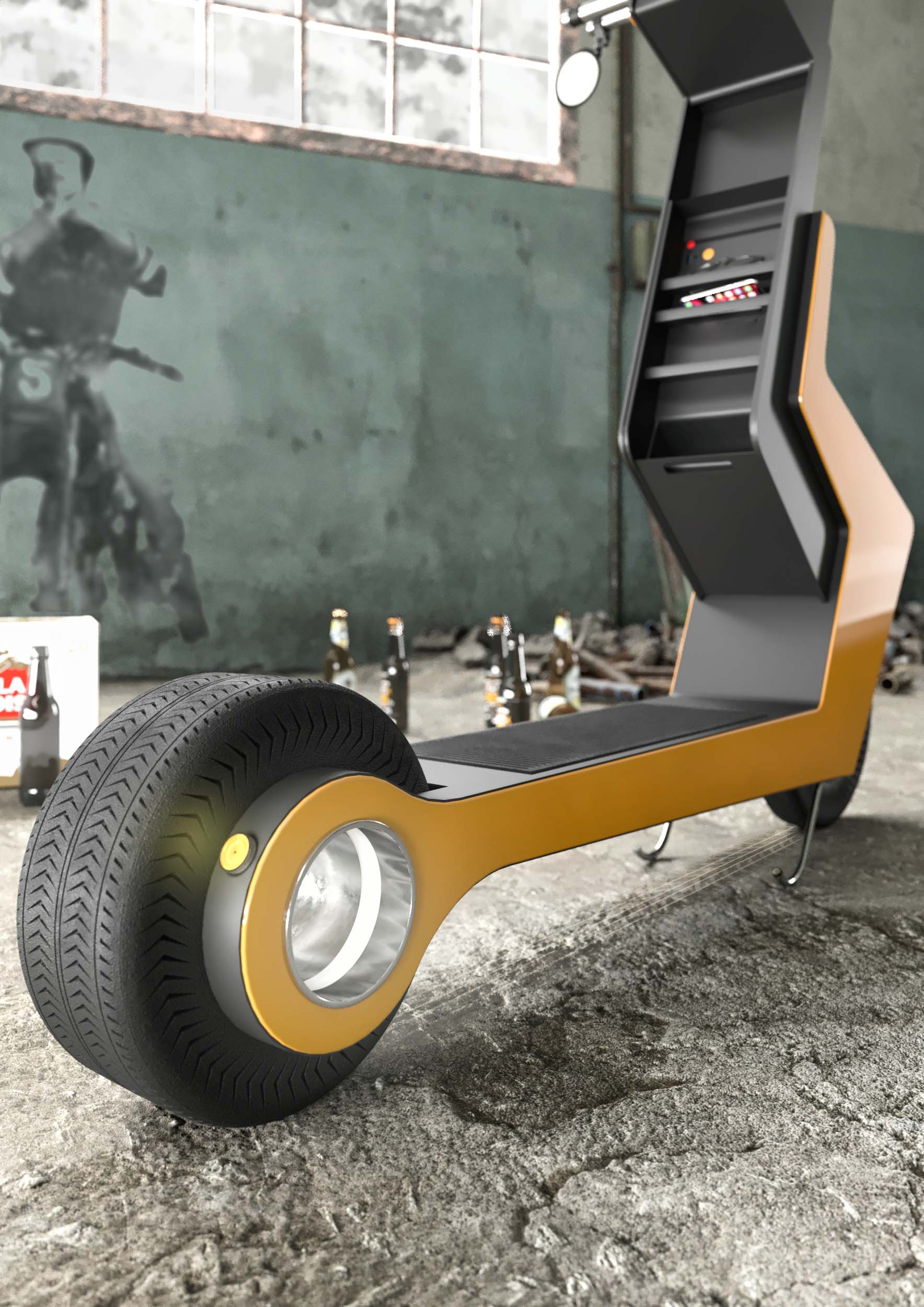 The main body has a casted aluminum structure and the side flaps. These side flaps and the deck can also be customized with free source files, materials, colors and designs.
