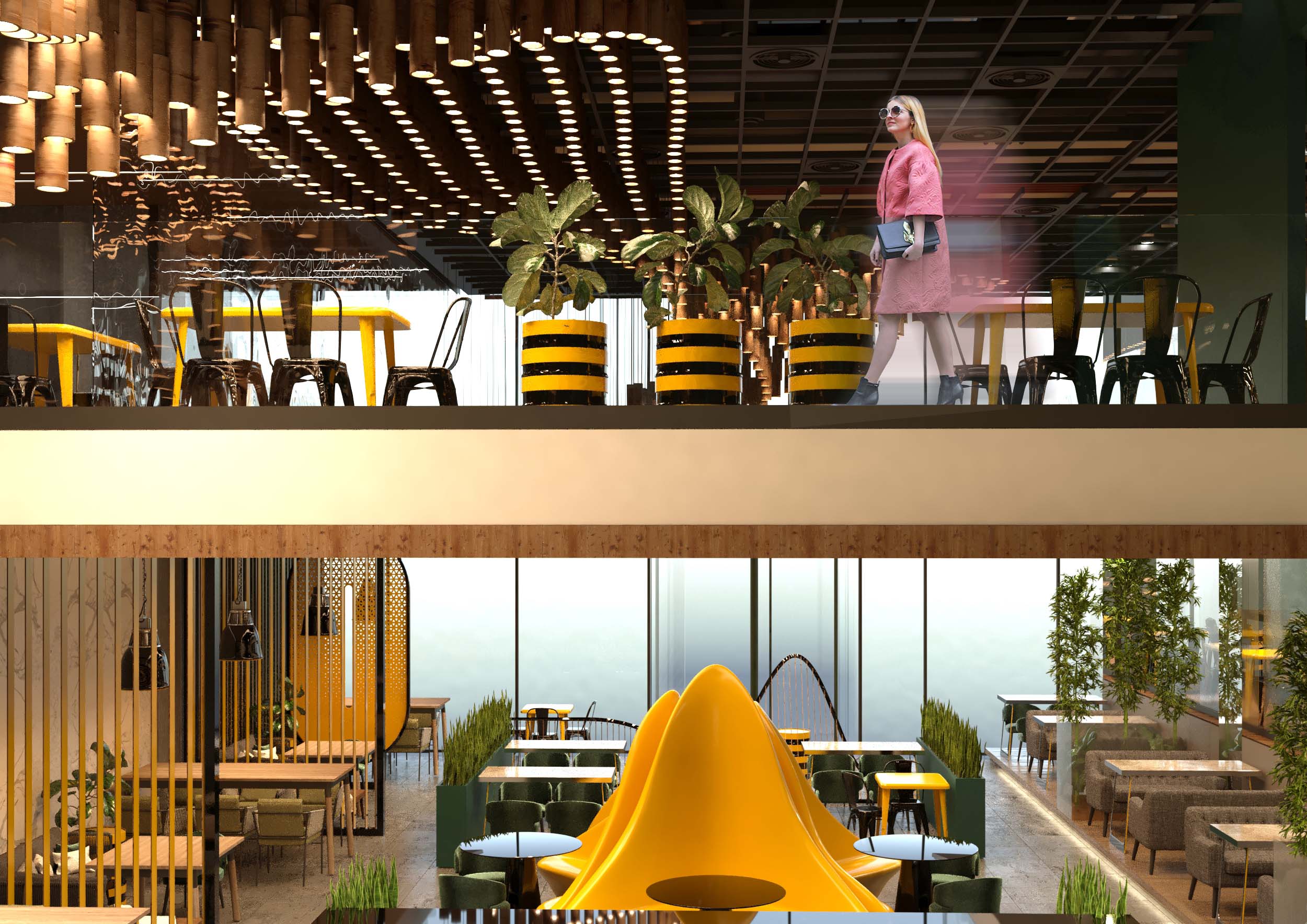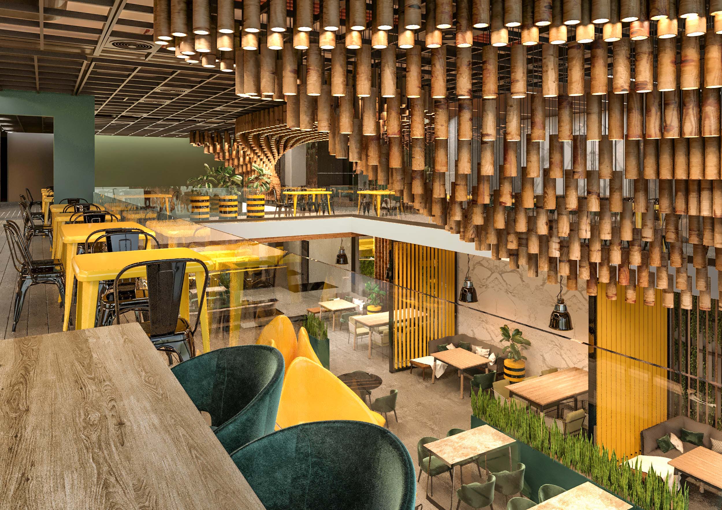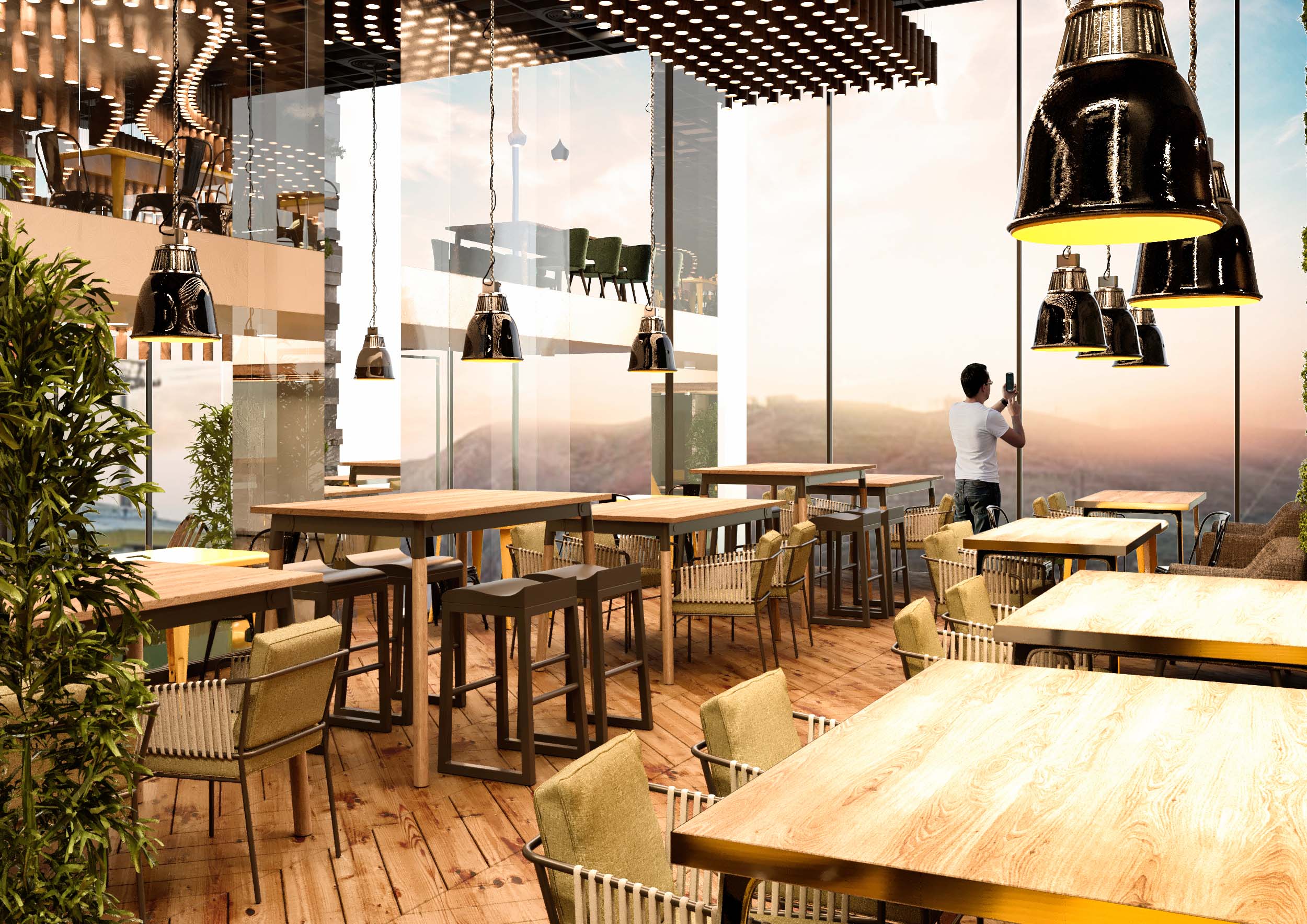 The restaurant is mainly divided into 3 leveled zones; the Main Hall, the Balcony and the Terrace.