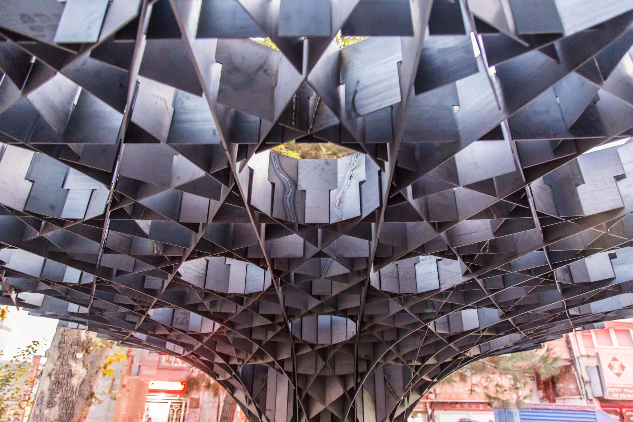 In terms of form and shape; this canopy can create spaces on its boundaries which were formed by the conversion of a surface.